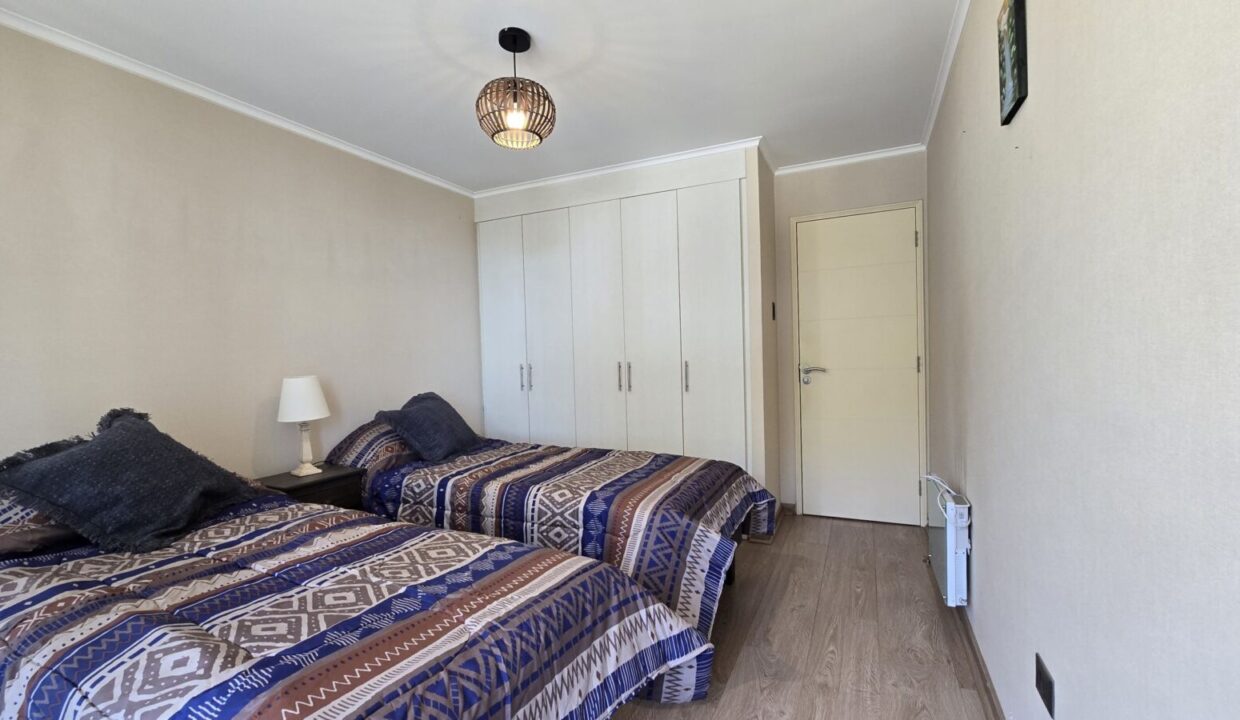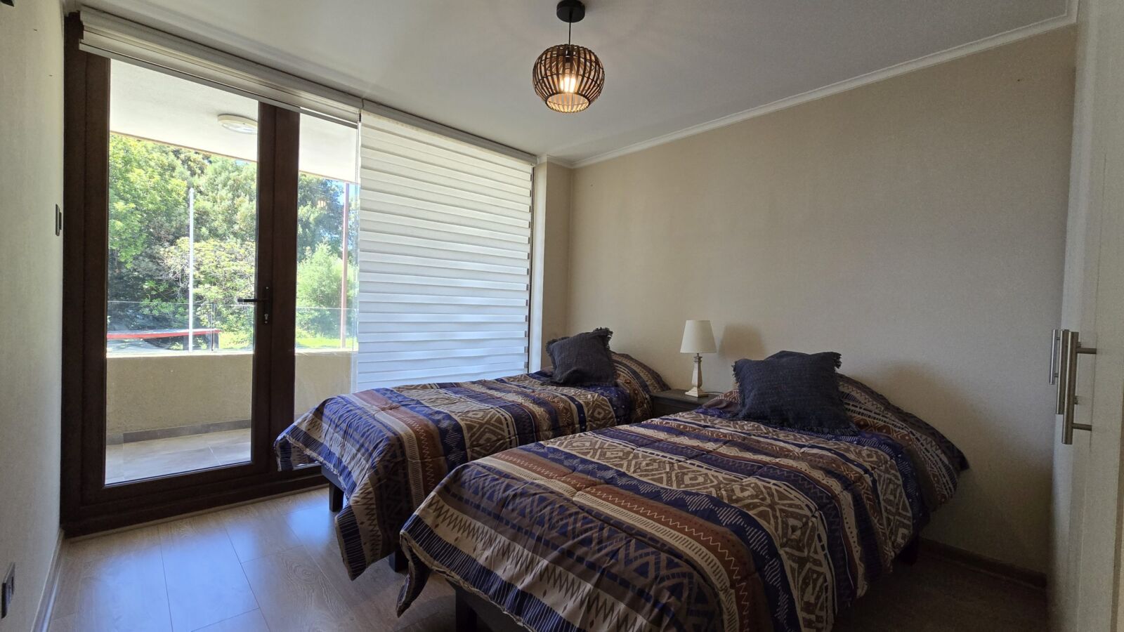 3 dormitorios, 2 baños completos (dormitorio principal con baño en suite), 1 estacionamiento y 1 bodega. Ubicado en un 2do piso y con una superficie construida de 100 metros cuadrados, este departamento cuenta además con una terraza de 20 metros cuadrados con dirección directa a la playa y lago, más un balcón en las habitaciones contiguas, perfecta para disfrutar de vistas panorámicas y momentos de relajación.