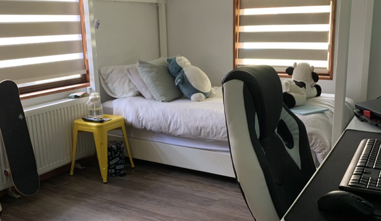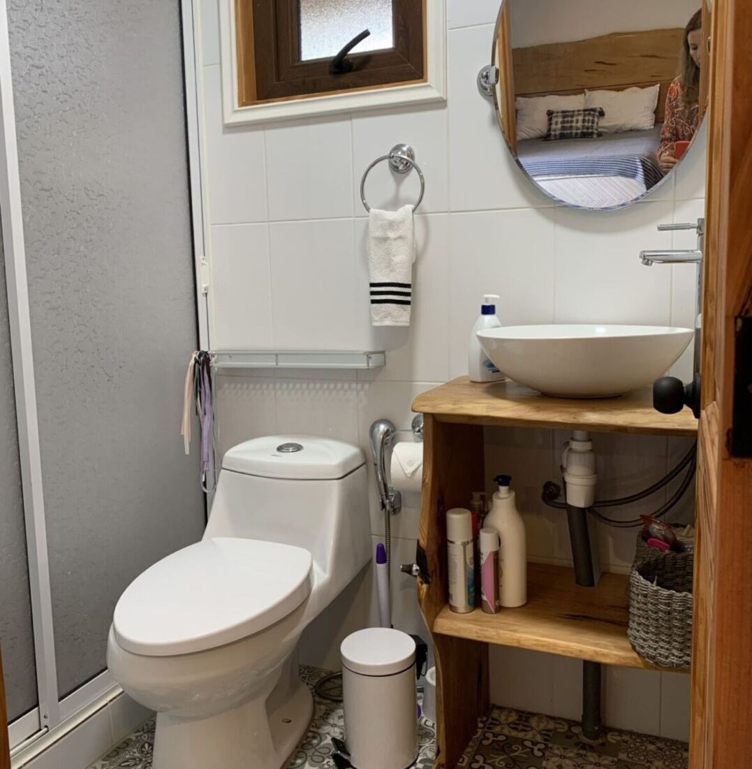 El cuarto dormitorio se encuentra en el sector de la cocina, es amplio alcanza una cama de dos plazas, baño completo y closet.