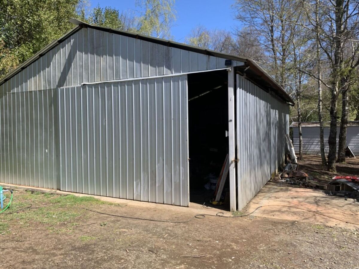 El galpón es de 100m2, tiene loza y paredes metálicas.